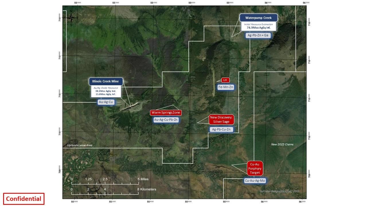 Alaska Silver Corp. (TSXV: WAM) (OTCQX: WAMFF) (la «Compañía«, «Alaska Silver» o «WAM«) se complace en proporcionar una actualización de exploración para el programa de campo de 2025 completado en su proyecto de depósito de reemplazo de carbonato («CRD») de Illinois Creek («IC») en el oeste de Alaska. Además de un programa de perforación limitado, se descubrió una emocionante zona de mineralización completamente nueva («Silver Sage») a través del trabajo de seguimiento de anomalías geoquímicas históricas del suelo.