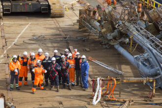 Equipo multidisciplinario de Enap retira brazos de carga en muelle 1 de Cabo Negro