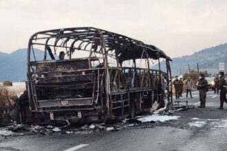 Incendio de bus en Carretera El Cobre pone en peligro a trabajadores de El Teniente