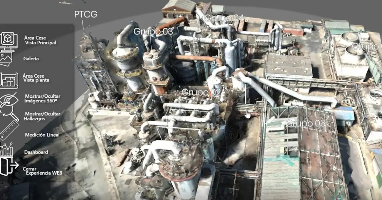 El plan piloto se centró en la Planta de Ácido, uno de los puntos más sensibles de la ex fundición. Para ello se levantó un mapa digital en 3D de la planta, elaborado con videos y fotografías capturadas por drones. El modelo puede recorrerse mediante lentes de realidad virtual (VR) o en dispositivos digitales, permitiendo una inspección detallada sin necesidad de exposición directa a riesgos.
