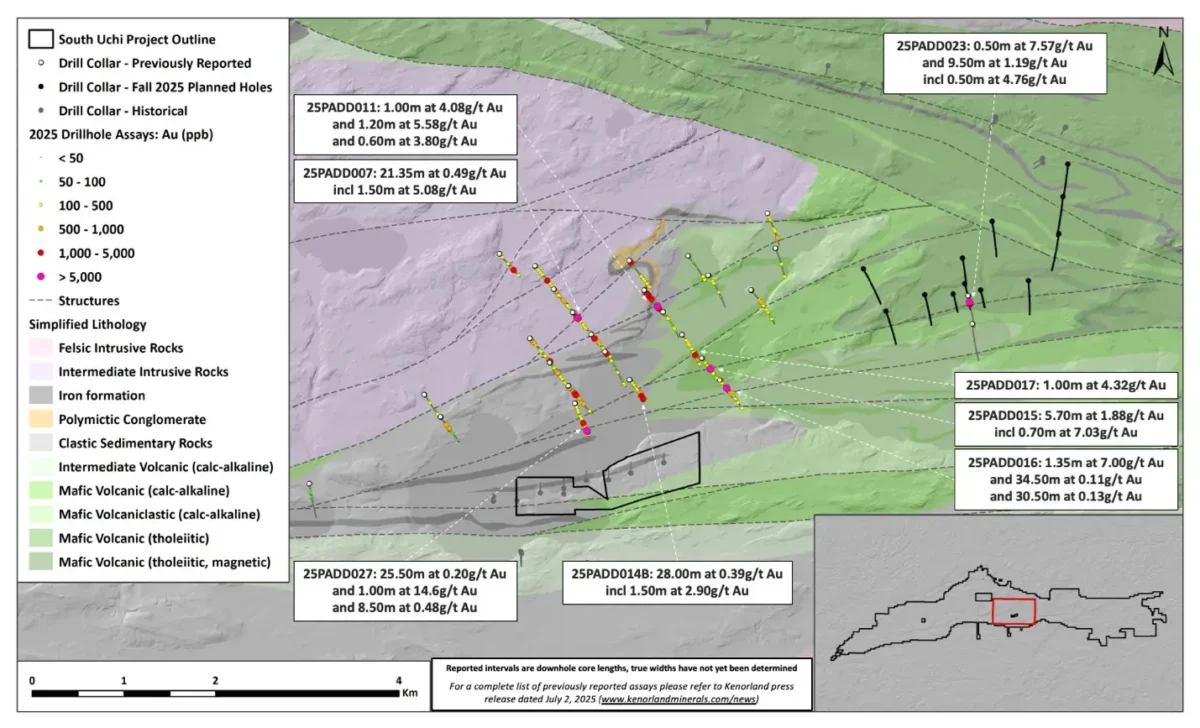 Kenorland Minerals Ltd. (TSXV: KLD) (OTCQX: KLDCF) (FSE: 3WQ0) («Kenorland» o la «Compañía«) se complace en anunciar el inicio del programa de perforación diamantina de Fase 2 en el Proyecto South Uchi (el «Proyecto«), ubicado en el Distrito Red Lake de Ontario y mantenido bajo un acuerdo de opción con Auranova Resources Inc. («Auranova«).