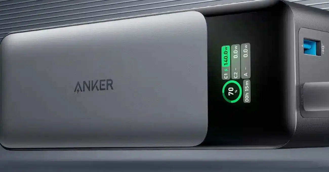 El Anker 737 es uno de los cargadores portátiles más completos que existen. Tiene una capacidad de 24.000 mAh, suficiente para cargar varias veces un smartphone o incluso un notebook. Su potencia alcanza los 140W y cuenta con tres puertos, lo que permite conectar varios dispositivos al mismo tiempo. Además, incluye una pantalla digital que muestra el estado de la carga en tiempo real.