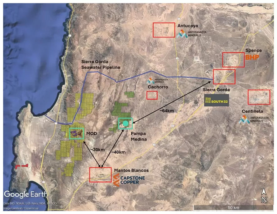 Hayden Locke, presidente y director ejecutivo, comentó: «El trabajo que Sergio Rivera y el resto del equipo de exploración de Marimaca han realizado en Pampa Medina continúa reforzando nuestro objetivo en Marimaca: definir un potencial de crecimiento creíble del distrito más allá de la capacidad de 50ktpa descrita en el DFS del MOD. Estos resultados, junto con nuestro reciente RCA para el Ministerio de Defensa, ciertamente nos están poniendo en el camino para lograr este objetivo. Esperamos continuar definiendo el potencial a escala de distrito en nuestro programa de perforación de Fase II y actualizar a nuestras partes interesadas en consecuencia».