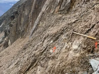 El programa de perforación en curso continúa definiendo y expandiendo las tendencias mineralizadas a lo largo de los 3 km de longitud de rumbo de la Zona Norte. La mineralización en la «Zona de la pared del pie» alojada en el cizallamiento está asociada con diferencias reológicas y químicas entre limolitas y lutitas y los sedimentos volcaniclásticos de la pared del pie. Las leyes de oro se correlacionan con vetillas de cuarzo con pirita diseminada y arsenopirita como minerales accesorios. Los brotes de mineral se desarrollan donde las cizallas de buzamiento pronunciado con tendencia norte-noreste se cruzan con la cizalla de la pared inferior de buzamiento noreste y este. Las mediciones de la bisagra de pliegue y la línea de estiramiento confirman la mineralización moderada de norte a norte-noreste.