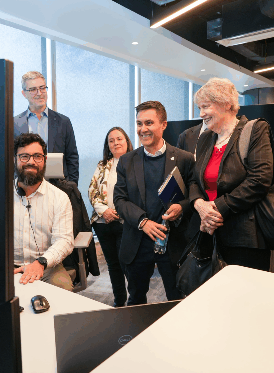 Helen Clark, presidenta de la organización, recorrió las dependencias del Centro Integrado de Operación Remota de Los Bronces, en la Torre Titanium, junto a representantes de Cochilco y del sector privado.