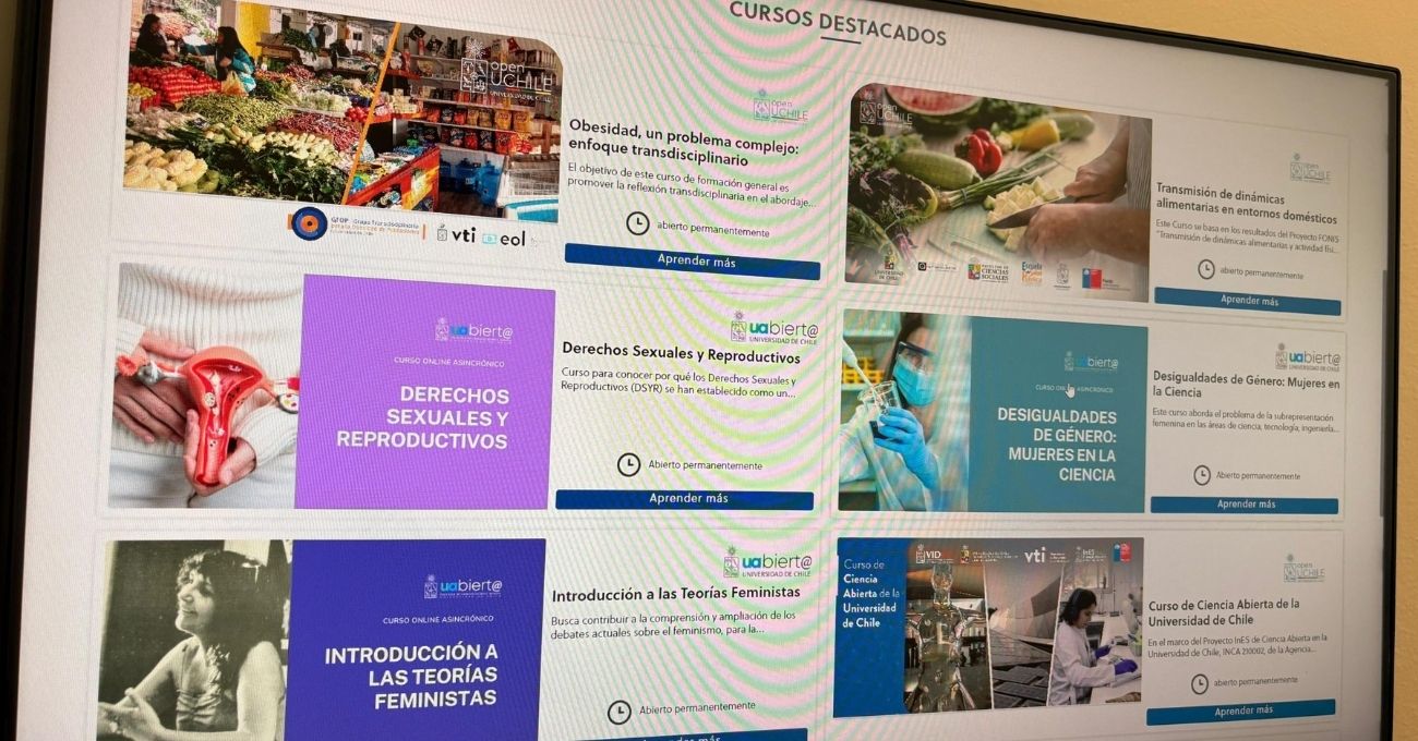 La Universidad de Chile mantiene activa su plataforma Open UChile, con el fin de ampliar el acceso al conocimiento académico en el país. A través de este portal, cualquier persona puede inscribirse en una serie de cursos abiertos y gratuitos que abordan temáticas de alto interés social y académico.