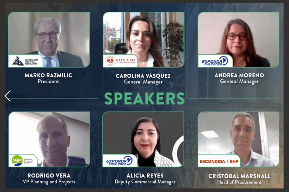 Este 16 de octubre se realizó el webinar “Business Opportunities in the Chilean Mining Market”, organizado por EXPONOR, para promover las oportunidades de inversión en la minería chilena. El evento reunió a actores clave del sector, como la Asociación de Industriales de Antofagasta (AIA), SONAMI, SQM y Escondida | BHP, con miras a su edición 2026, se destacó el potencial de Chile como destino para inversiones mineras